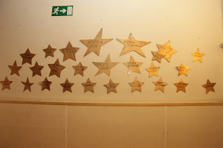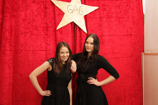 Igatahes oleme nüüd palju positiivset tagasisidet saanud, eriti kujunduse osas. Kes olid kujundustiimi pead? Mina ja Kristi. Whiiii! Tõmbasime vilkuvad tulukesed üle saali ning riputasime külge 3D-lumehelbed. Samuti tegime pildistamise tausta ehk imeilusad punased kardinad. Põhikoolipeol pidi tuuletõmbuse tõttu need maa külge teipima. Me olime need kurjad, kes inimesi tund aega garderoobi ei lasknud. Gümnaasiumi peol lahendasime selle probleemi. Kõik sebisid edasi-tagasi nagu sipelgad. Veel üks kujunduselement oli kuldsed papist tähekesed klassijuhatajate ja meie enda klassikaaslaste nimedega. Oma tähed said ka Aivar Hansen ja Katrin Meschin. :)
